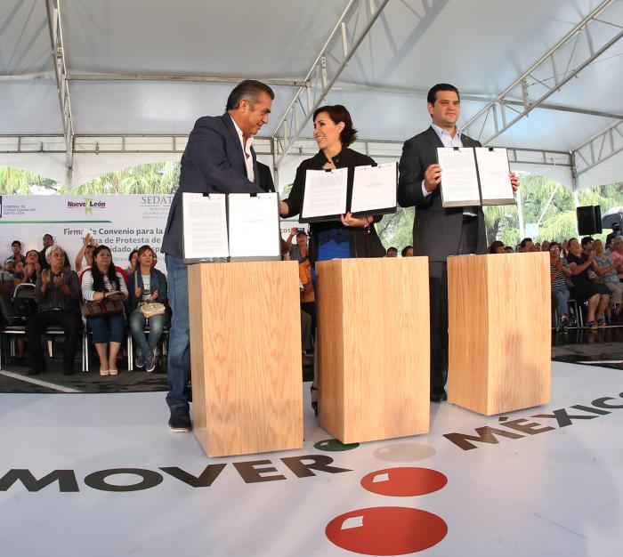 El acuerdo fue suscrito por el Gobernador Jaime Rodríguez Calderón; la titular de la Sedatu, Rosario Robles, y el Alcalde de Guadalupe, Francisco Cienfuegos.