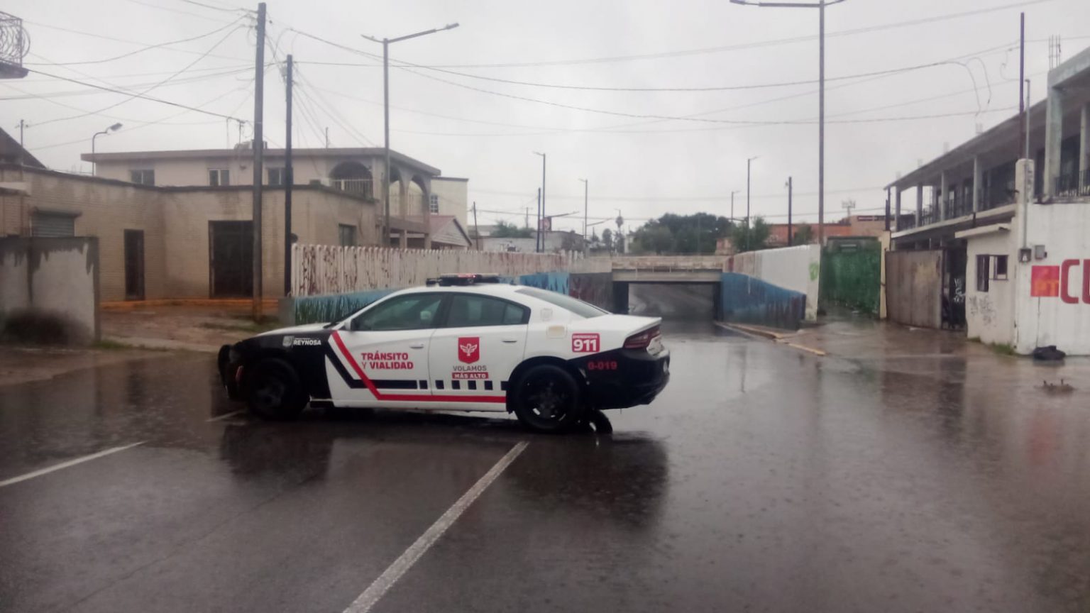 La Dirección de Tránsito y Vialidad, del Gobierno de Reynosa, informa que agentes de la corporación cerraron el paso en los puentes a desnivel, 1 y 2, por acumulación de agua, para evitar posibles incidentes, como también están apostados en sitios que las lluvias convierten en puntos críticos.