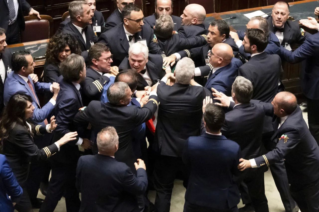Se desata pelea campal en la Cámara de Diputados de Italia