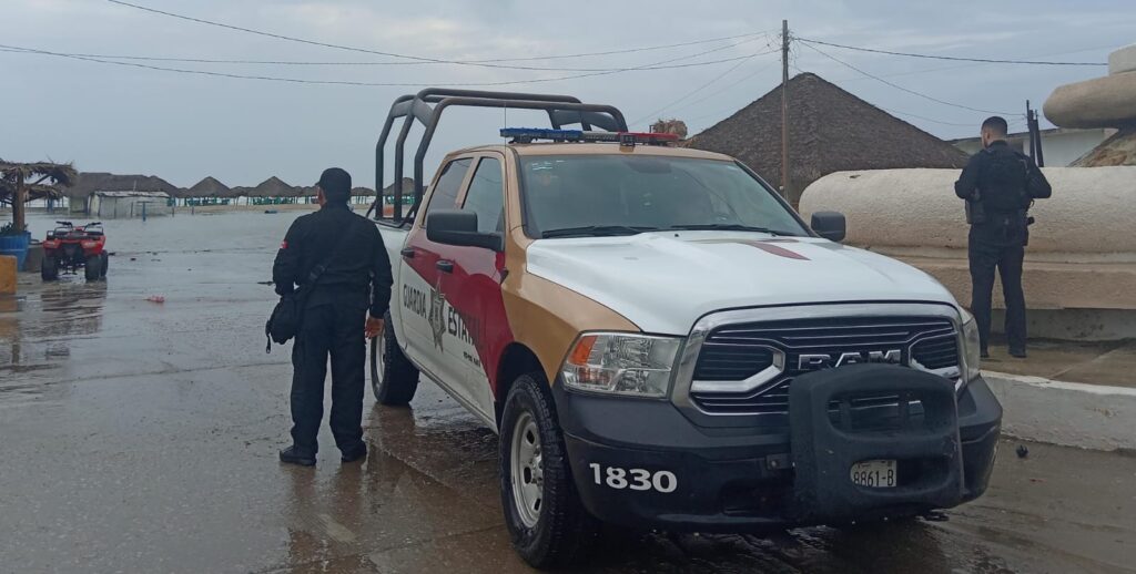 Ciudad Victoria, Tamaulipas. – Tras el ingreso de la tormenta tropical Alberto en el sur de Tamaulipas, personal de la Guardia Estatal se mantiene vigilante en las playas turísticas de La Pesca, en Soto la Marina, y Miramar, en Madero, a fin de supervisar el nivel de afectación en la población y el patrimonio de las y los tamaulipecos residentes de esas zonas.