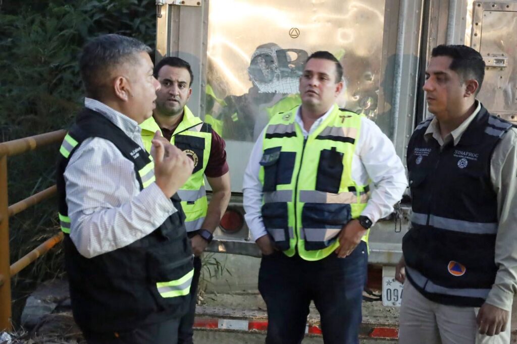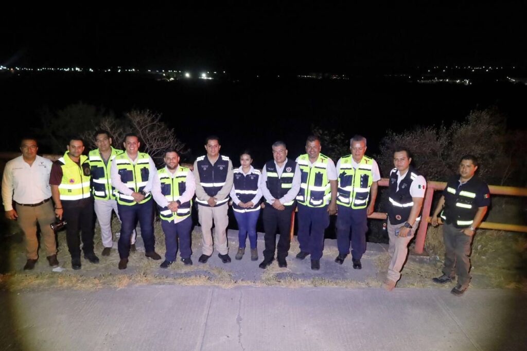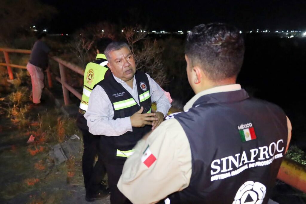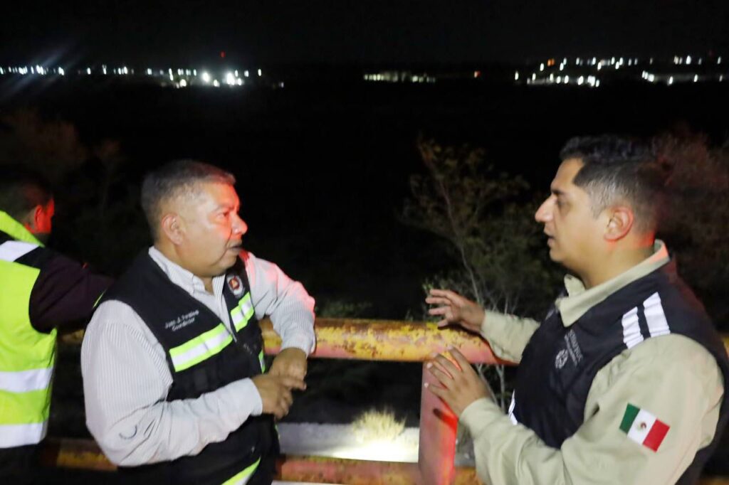 En compañía de personal operativo, Mario Alberto Victoria Cárdenas, Subdirector de Atención de Emergencias de la Coordinación Nacional de Protección Civil, Luis Gerardo González de la Fuente y Juan José Perales Jaramillo, de PC Estatal y Municipal, inspeccionaron los drenes del Eje Vial, Avenida La Paz y de desemboque del boulevard Praxedis Balboa al río San Marcos.