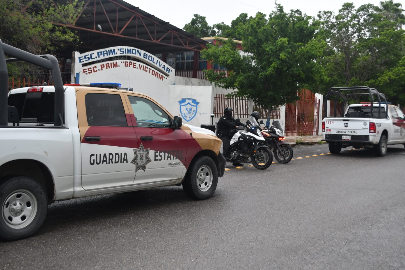Ciudad Victoria, Tamaulipas – Con la finalidad de preservar la seguridad en los planteles educativos de la entidad, personal de la Guardia Estatal mantendrá la vigilancia a través del operativo “Escuela Segura”, el cual redoblará la presencia policial durante el periodo vacacional.
