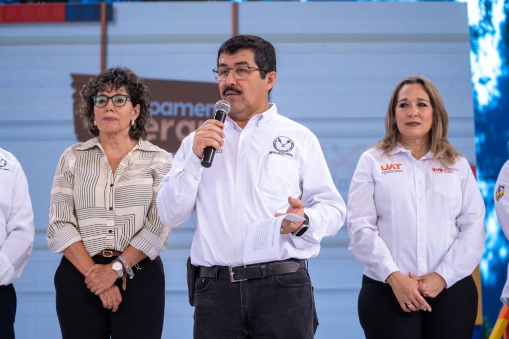La apertura del evento estuvo a cargo del MVZ Dámaso Anaya Alvarado, rector de la UAT, quien reafirmó el compromiso de impulsar la educación y la divulgación científica en actividades que motiven la curiosidad de la niñez y su cuestionamiento ante el mundo que le rodea, además de señalar que la UAT cuenta con reconocidos investigadores e investigadoras que contribuirán a su aprendizaje a lo largo de este campamento.