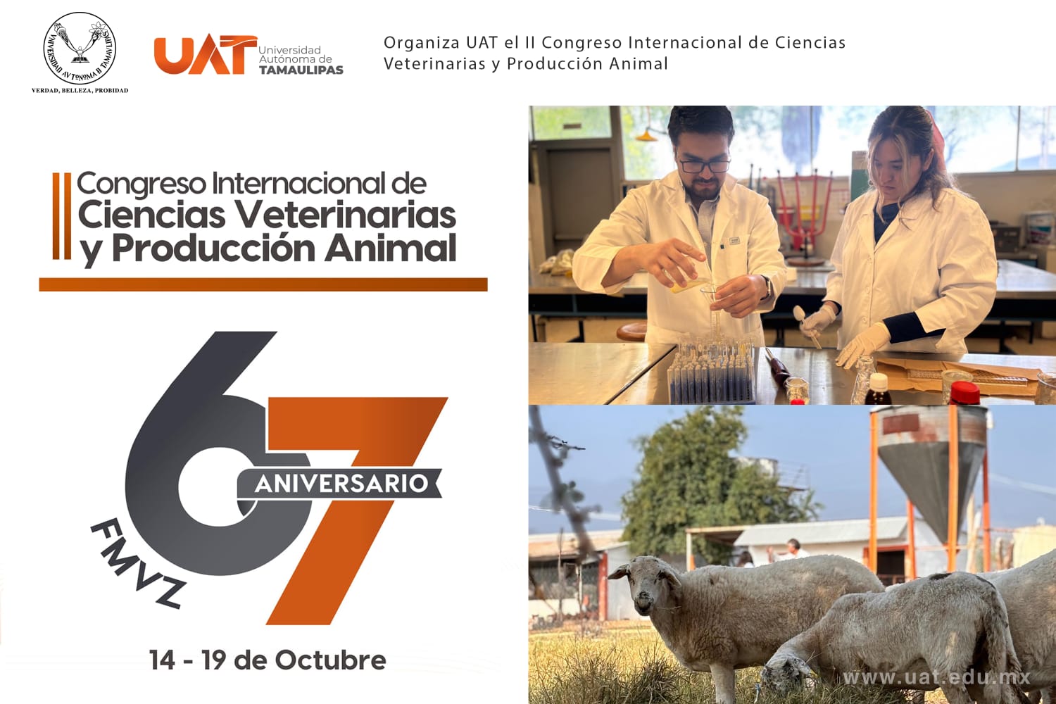 La Universidad Aut贸noma de Tamaulipas (UAT), a trav茅s de la Facultad de Medicina Veterinaria y Zootecnia (FMVZ), realizar谩 el segundo Congreso Internacional de Ciencias Veterinarias y Producci贸n Animal del 14 al 19 de octubre de 2024.