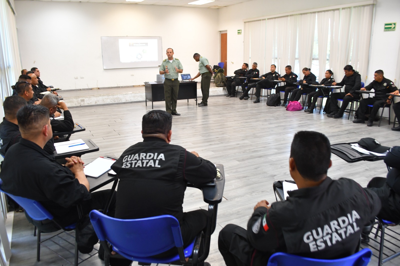 Esta capacitación está dirigida a 29 integrantes de la Guardia Estatal y está a cargo de los intendentes de la Policía Nacional de Colombia, César Augusto Barrera León y Juan Meneses Chacón.