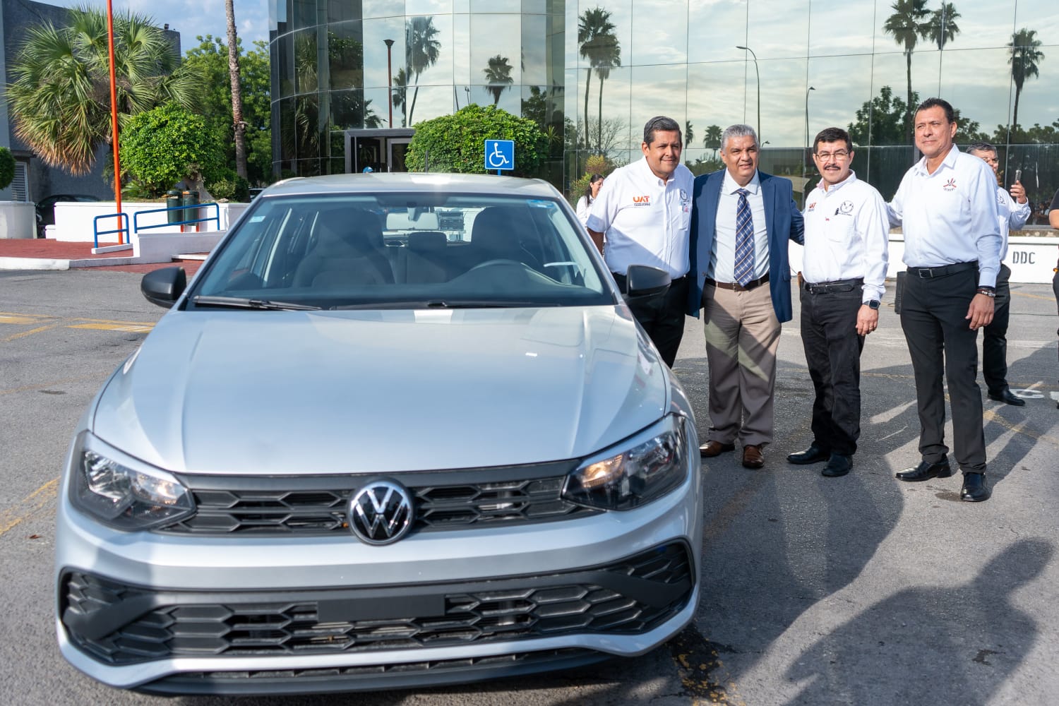 En cumplimiento de los compromisos establecidos en el contrato colectivo laboral, el rector de la Universidad Aut贸noma de Tamaulipas (UAT), D谩maso Anaya Alvarado, entreg贸 los veh铆culos sorteados durante el pasado mes de junio entre el personal docente del Sindicato 脷nico de Trabajadores Acad茅micos (SUTAUAT).