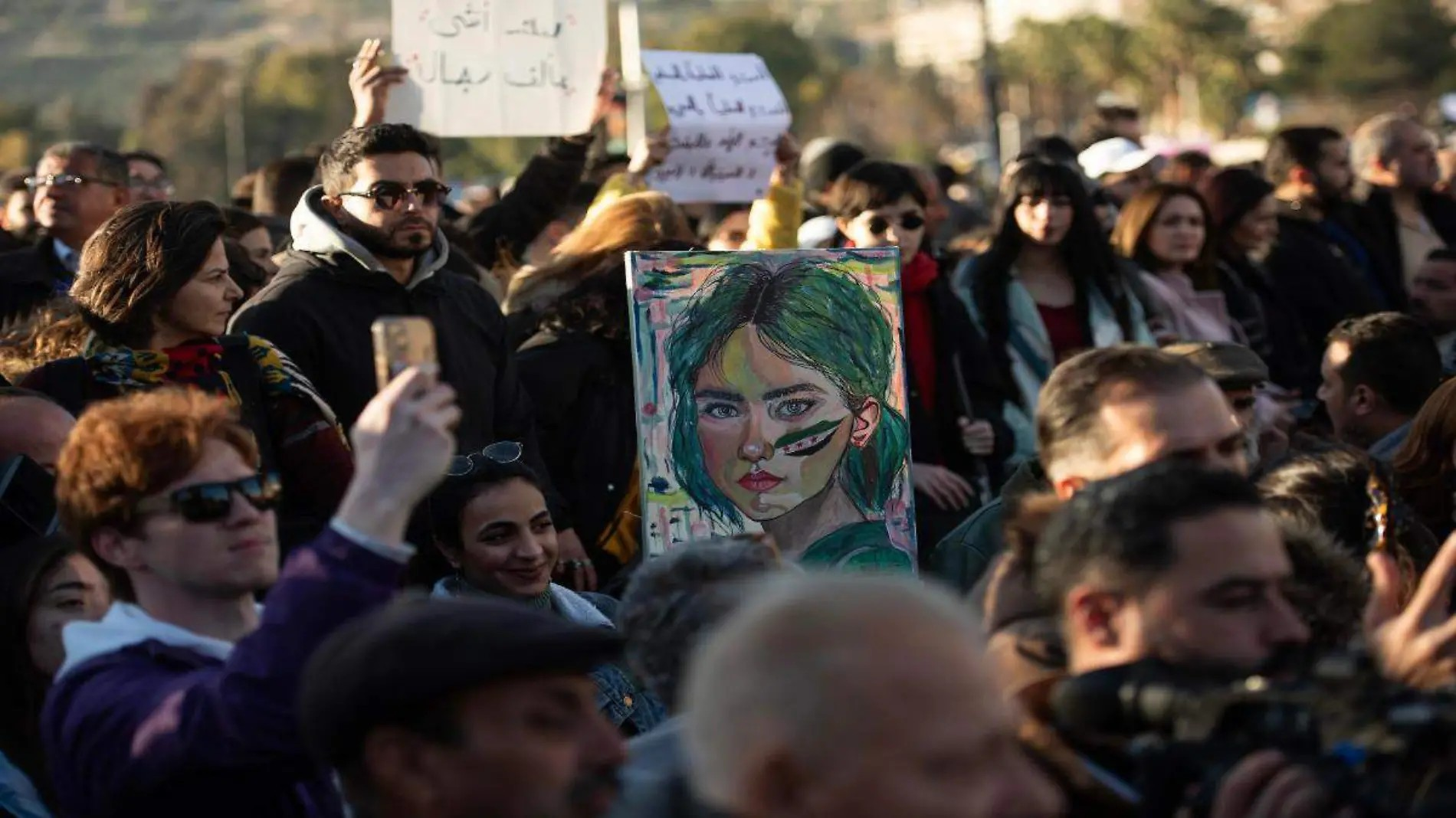 «Queremos democracia, no un Estado religioso» y «Siria, Estado libre y secular» fueron algunos de los mensajes coreados por hombres y mujeres presentes. Una pancarta destacó: “No hay nación libre sin mujeres libres”.