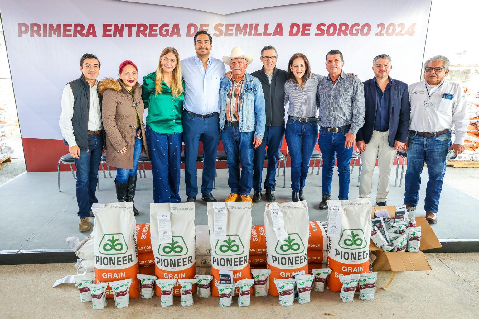 El Presidente Municipal Carlos Peña Ortiz, llevó a cabo la Primera Entrega de Semilla de Sorgo 2024 del programa Trato Justo, contando con la participación de los Senadores de la República, Maki Esther Ortiz Domínguez y José Ramón Gómez Leal, además de las Diputadas Federales Claudia Alejandra Hernández Sáenz y Cassandra Priscila De los Santos Flores.