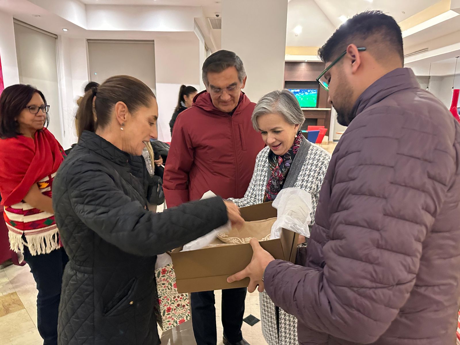 Nuevo Laredo, Tamaulipas.- Esta noche, con una temperatura de 9 grados, pero con mucho calor humano, el gobernador Américo Villarreal Anaya y la doctora María de Villarreal recibieron a la presidenta Claudia Sheinbaum Pardo en la ciudad de Nuevo Laredo, donde este domingo encabezará una jornada de trabajo en instalaciones de la que será la nueva Agencia Nacional de Aduanas y, posteriormente, presidirá un evento masivo en el Poliforum La Fe.