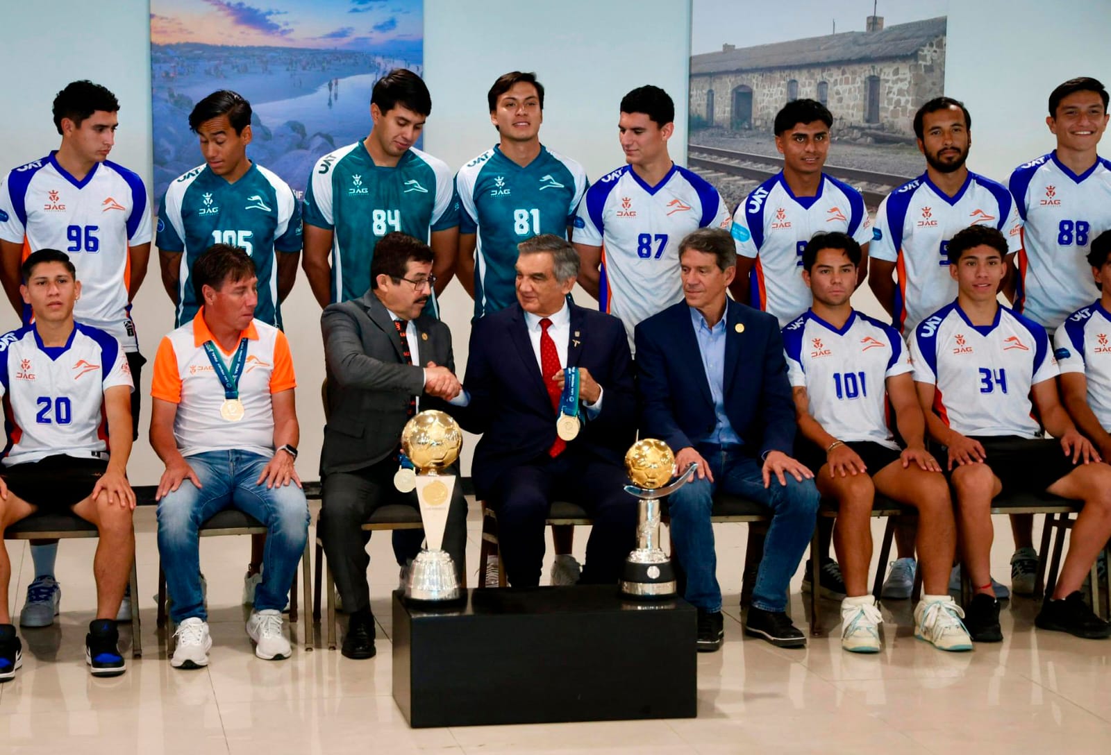 Acompañado por el rector de la UAT, Dámaso Anaya Alvarado, el gobernador reconoció públicamente el esfuerzo, compromiso y disciplina de los jóvenes deportistas, quienes lograron alzarse como Campeones de Campeones.