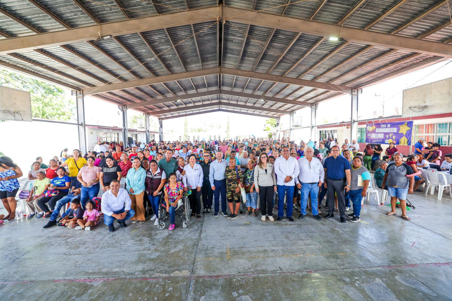 El Profesor Juan Antonio Ruiz Rocha, dio un mensaje de agradecimiento a nombre de padres familia y vecinos, recibiendo a la comitiva que proporcionó los servicios y apoyos a los colonos, en distintas mesas de trabajo con trámites de alumbrado público, bacheo, capillas municipales, entre otras.