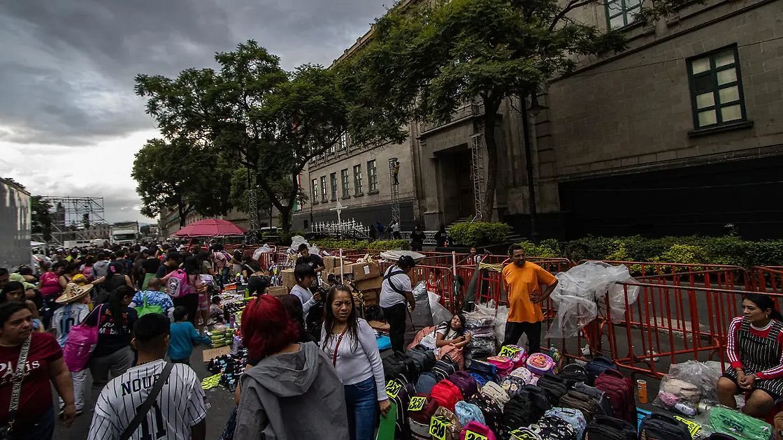 Aunque el edificio permanece resguardado con vallas metálicas, en sus alrededores persisten los tradicionales puestos ambulantes del Centro Histórico, que ofrecen mochilas, libretas, colores y demás útiles escolares a pocas horas del inicio del ciclo académico 2025-2026.