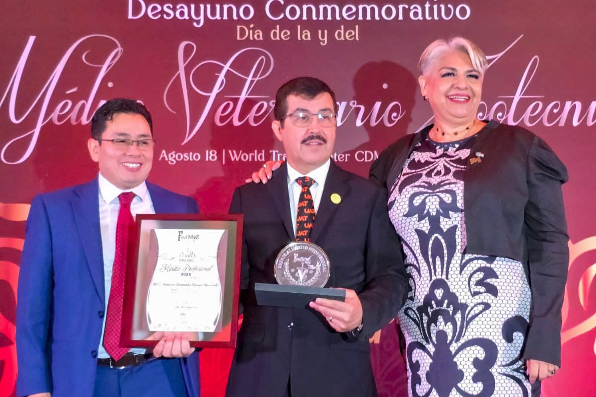 La ceremonia celebrada en la capital del país fue encabezada por el secretario de Agricultura y Desarrollo Rural del Gobierno de México, Julio Berdegué Sacristán, y la presidenta de la FedMVZ, Laura Arvizu Tovar, quienes resaltaron la importancia de reconocer la labor de los médicos veterinarios zootecnistas en la salud animal, la seguridad alimentaria y el bienestar social, destacando la contribución de líderes como el rector Dámaso Anaya para el fortalecimiento de este sector.