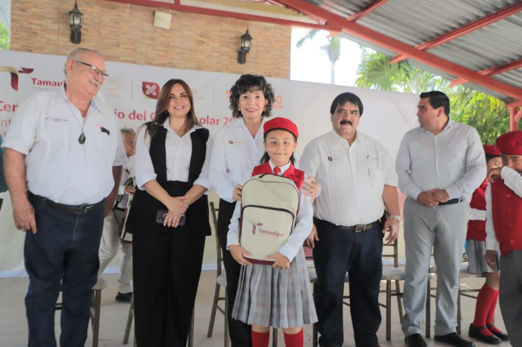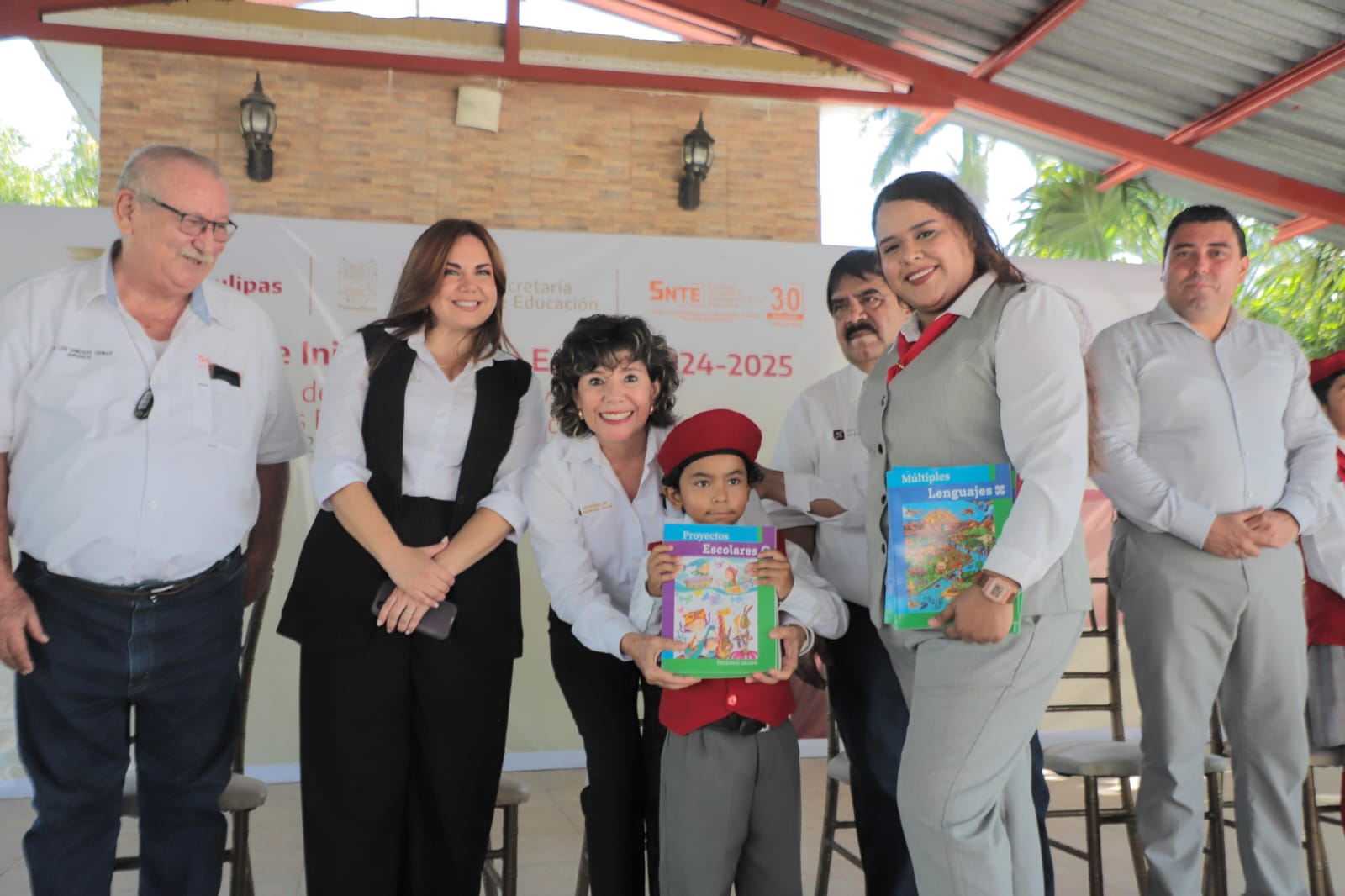 Asimismo, se hizo la entrega de libros de texto y útiles escolares en esta escuela primaria, los cuales se distribuyeron también en 21 municipios de Tamaulipas en condiciones económicas desfavorables.