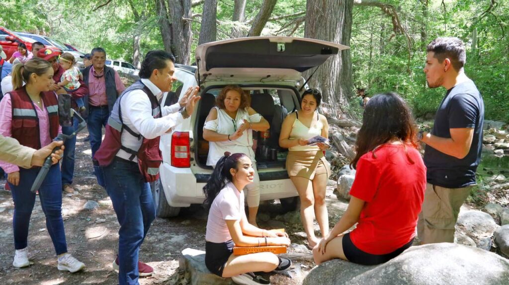 En su recorrido, saludó y dialogo por horas con familias completas que disfrutaban del caudal del lugar, atendió peticiones ciudadanas y finalmente compartir alimentos del evento gastronómico «Vic Parrilla Fest Semana Santa 2024» organizado este sábado por la Secretaría de Desarrollo Económico y Turismo.