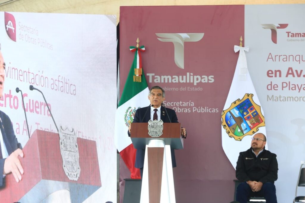 Como parte de su gira de trabajo, Villarreal Anaya dio el banderazo de inicio a la pavimentación asfáltica de la avenida Roberto Guerra, de playa Villagrán a la avenida Tarahumara, con un importe asignado de 38 millones 336 mil 533 pesos, en beneficio de más de 23 mil matamorenses.