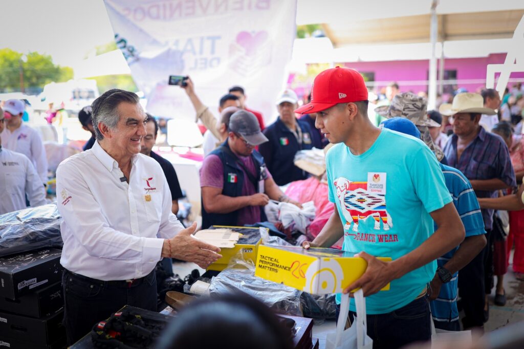 Güémez, Tamaulipas. En un ambiente de fiesta y alegría en esta cabecera municipal, el gobernador del estado el doctor Américo Villarreal Anaya y la presidenta del DIF Tamaulipas, doctora María de Villarreal, pusieron en marcha los Tianguis del Bienestar junto al comisionado de acción de esta estrategia Sergio Gutiérrez Nava, quien asistió además como representante del Gobierno Federal.