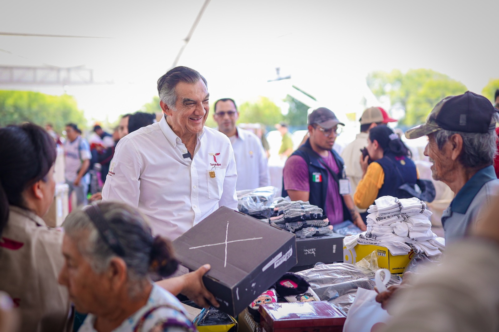 Güémez, Tamaulipas. En un ambiente de fiesta y alegría en esta cabecera municipal, el gobernador del estado el doctor Américo Villarreal Anaya y la presidenta del DIF Tamaulipas, doctora María de Villarreal, pusieron en marcha los Tianguis del Bienestar junto al comisionado de acción de esta estrategia Sergio Gutiérrez Nava, quien asistió además como representante del Gobierno Federal.