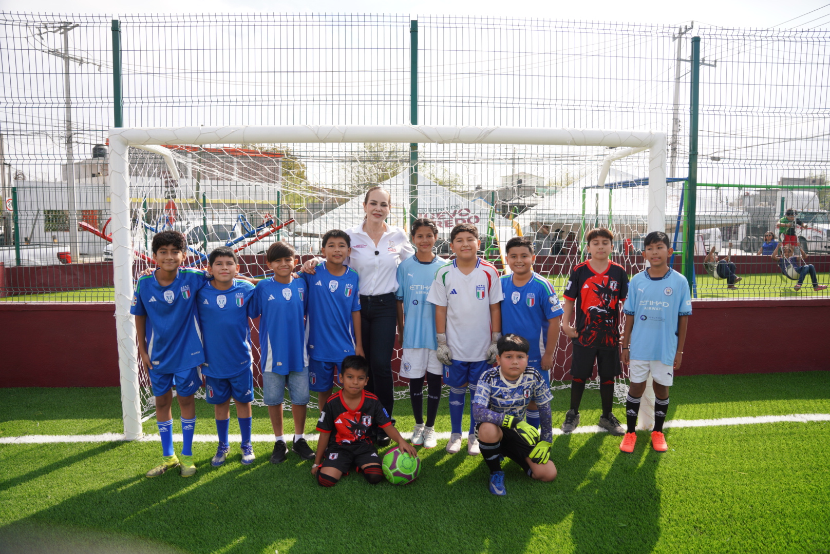 La presidenta municipal, Carmen Lilia Canturosas Villarreal, acompañada por vecinas y vecinos de la colonia Nueva Era, inauguró ambos centros deportivos que fueron rehabilitados de manera integral, con el objetivo de ofrecer espacios seguros, funcionales y dignos para que niñas, niños y jóvenes puedan convivir, ejercitarse y desarrollarse en un entorno sano.