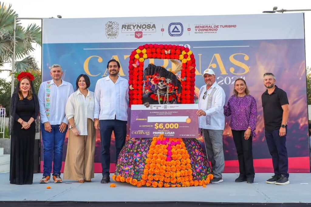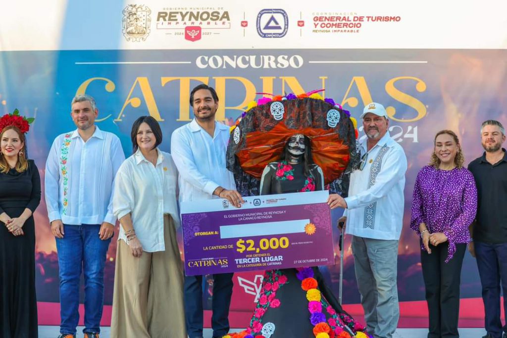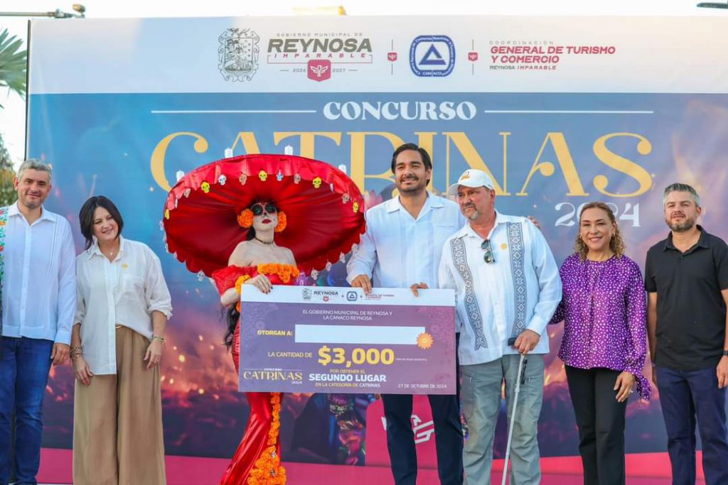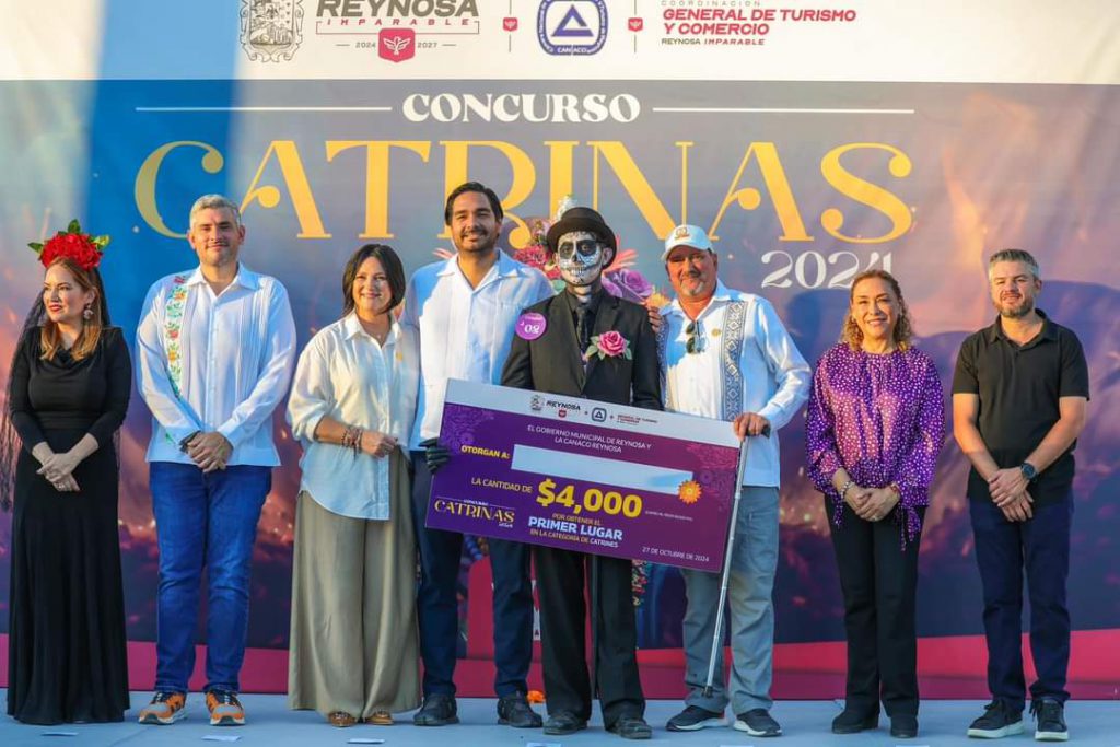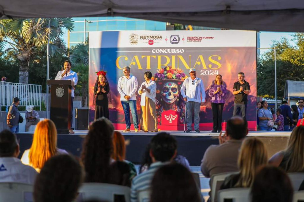 En un emotivo, colorido y vibrante evento, el Alcalde Carlos Peña Ortiz presidió ante más de Mil asistentes, el Concurso de Catrinas 2024, celebrando la rica herencia cultural mexicana, el cual fue organizado por la Cámara de Comercio, Servicios y Turismo de Reynosa que preside Gildardo López Hinojosa, con la colaboración del Ayuntamiento.