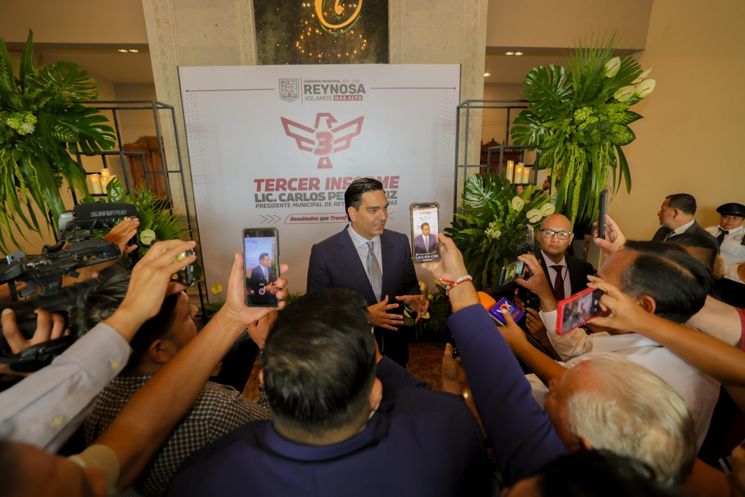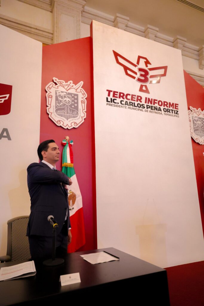 En cumplimiento con su compromiso de transparencia y rendición de cuentas, el Alcalde Carlos Peña Ortiz rindió su Tercer Informe de Gobierno, correspondiente al período 2021-2024, en un encuentro con la ciudadanía realizado este jueves 5 de septiembre, con la presencia del Ing. Raúl Quiroga Álvarez, Secretario de Recursos Hidráulicos para el Desarrollo Social, en representación del Dr. Américo Villarreal Anaya, Gobernador Constitucional del Estado de Tamaulipas.