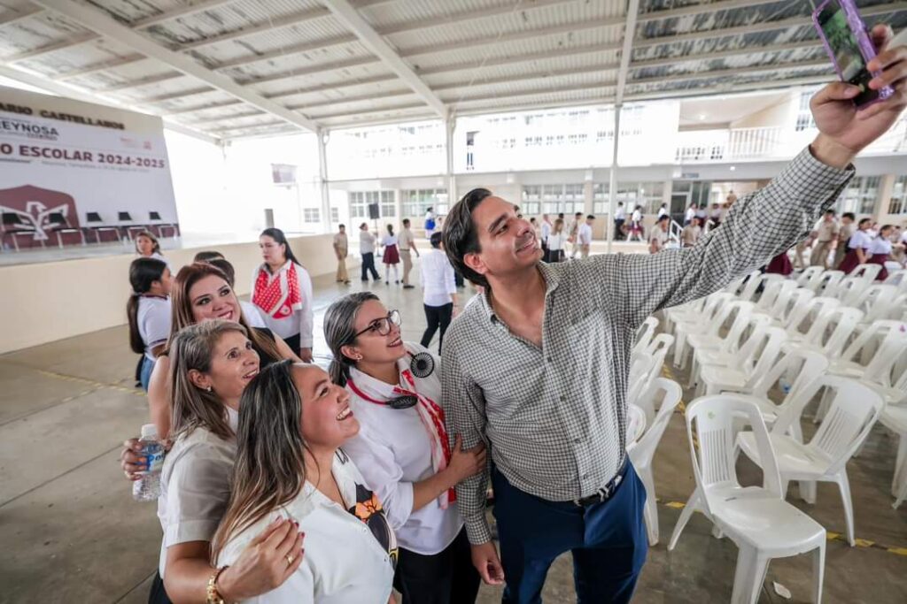 El Presidente Municipal Carlos Peña Ortiz Inauguró el ciclo escolar 2024-2025 en la escuela secundaria general número 8, Rosario Castellanos, donde acompañó a su Directora la Maestra Gilma Hernández Sánchez, este lunes 26 de agosto.