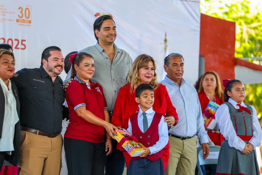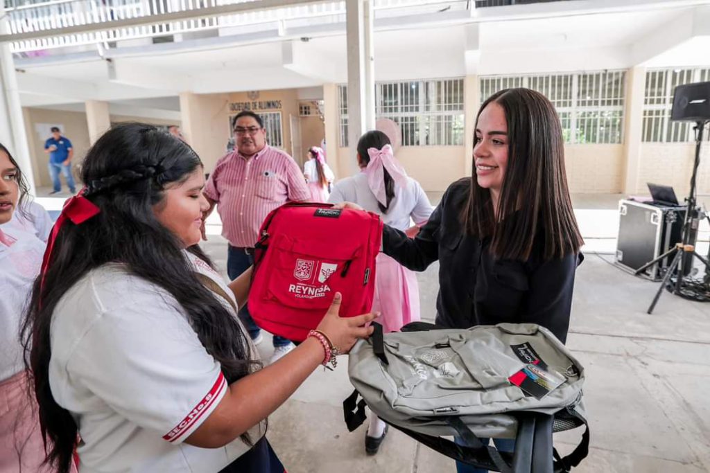 A las 11:35 de la mañana, de este lunes en que más de 143 Mil estudiantes ingresan a los salones de clase, el Presidente declaró inaugurado el nuevo ciclo escolar en la escuela Rosario Castellanos, donde como miembro de la iniciativa privada la Lic. Karla Fabiola Torres Romero entregó en donación mochilas escolares.
