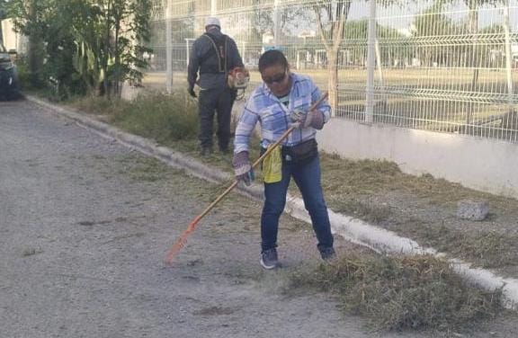 Alcalde Carlos Peña Ortiz dirigió personal operativo de la Secretaría de Servicios Públicos, al fraccionamiento Villas de Diamante, donde realizan labores de limpieza detallada de la calle Sauces, una vía en que creció maleza y se ha acumulado basura doméstica.