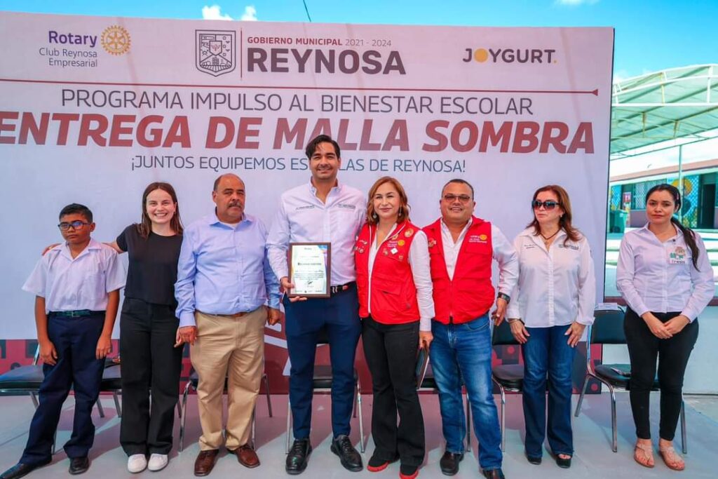 Un agradecimiento fue expresado este martes 27 de agosto por el Presidente, a Cosme Cerecedo Gutiérrez, Presidente del Club Rotario Reynosa Empresarial, y a la Lic. Oralia Cantú Cantú, por su apoyo. La techumbre es un ejemplo de la unión entre el Gobierno y la sociedad civil para mejorar la calidad de vida de los ciudadanos.