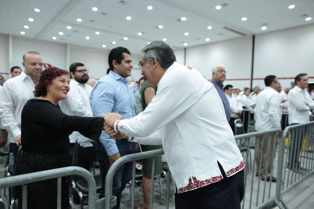 En esta ceremonia se contó con la asistencia de: Héctor Joel Villegas González, secretario general de Gobierno; David Cerda Zúñiga, presidente del Supremo Tribunal de Justicia; Úrsula Salazar Mojica, presidenta de la Junta de Gobierno del Congreso del Estado y Adriana Lozano Rodríguez, secretaria de Finanzas.