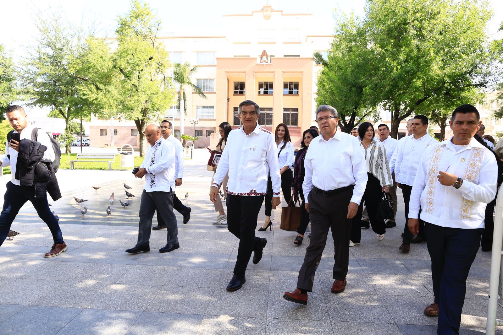 En este marco, se dio la bienvenida también a los participantes del foro académico “Energía y Sociedad”, que en su segunda jornada de actividades se llevó a cabo en las instalaciones de TAMIU, tras haber iniciado el día anterior en la Facultad de Comercio, Administración y Ciencias Sociales (FCACS) de la UAT en Nuevo Laredo.