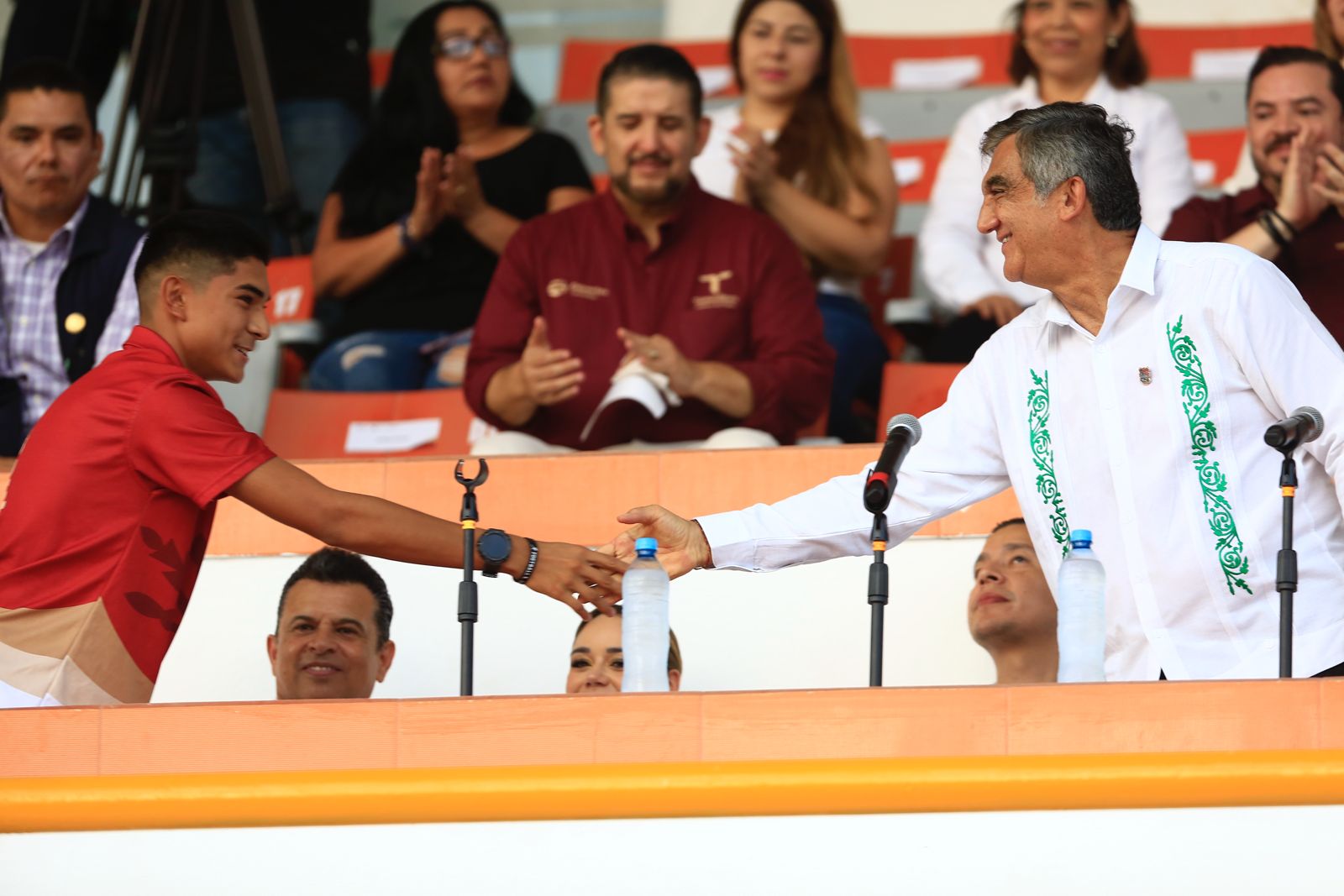 También acompañaron al gobernador en estos eventos Pedro Cepeda Anaya, secretario de Obras Públicas; Adriana Lozano Rodríguez, secretaria de Finanzas; Eduardo Gattás Báez, presidente municipal de Victoria, y la presidenta del DIF Victoria, Lucy Rodríguez de Gattás, además de funcionarios del INDE, entrenadores, padres de familia y deportistas en general.