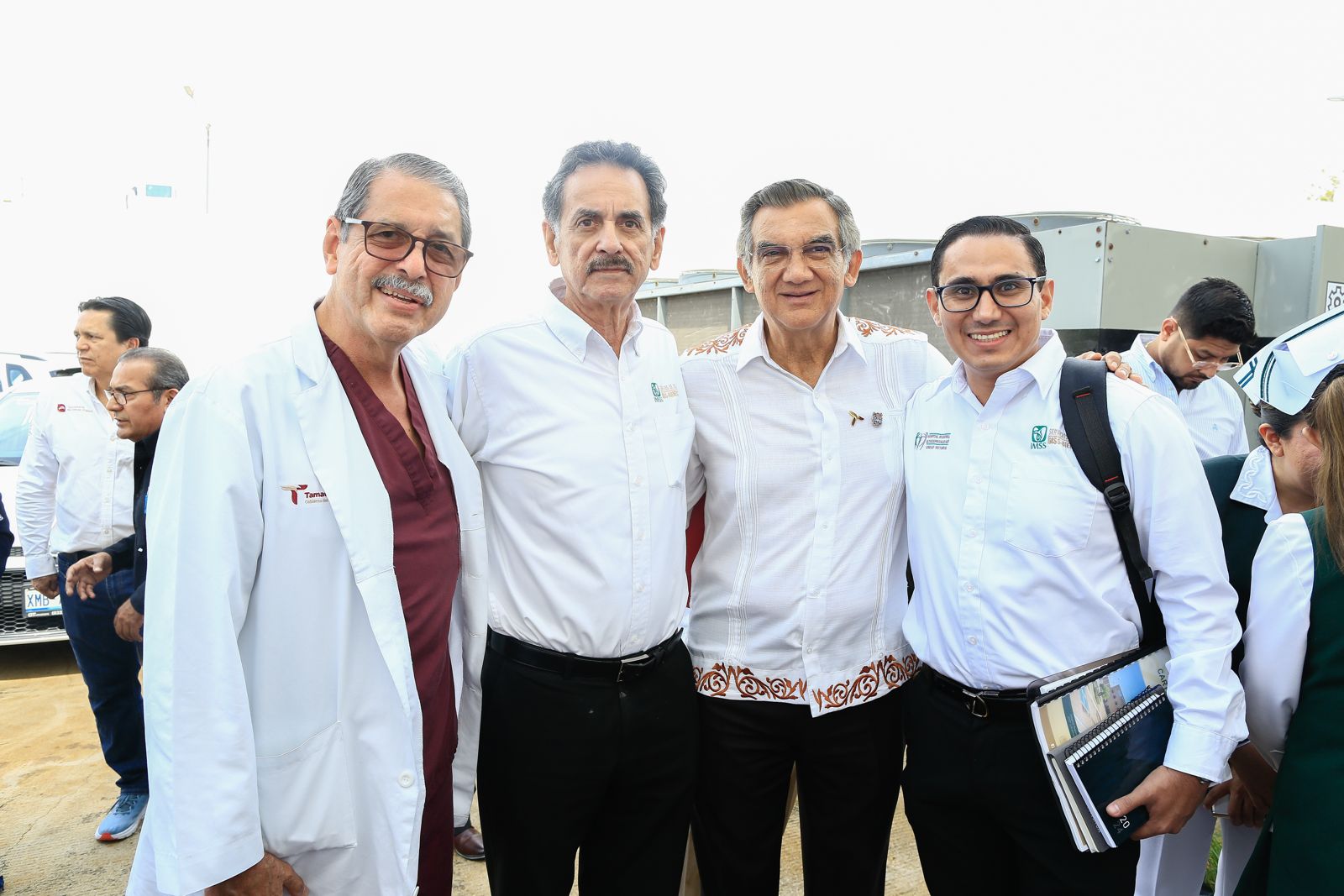 Acompañaron al gobernador en estos recorridos, Vicente Joel Hernández Navarro, secretario de Salud en Tamaulipas; Marggid Rodríguez Avendaño, coordinador estatal del IMSS-Bienestar; y Joaquín Juárez Durán, director del hospital Canseco.