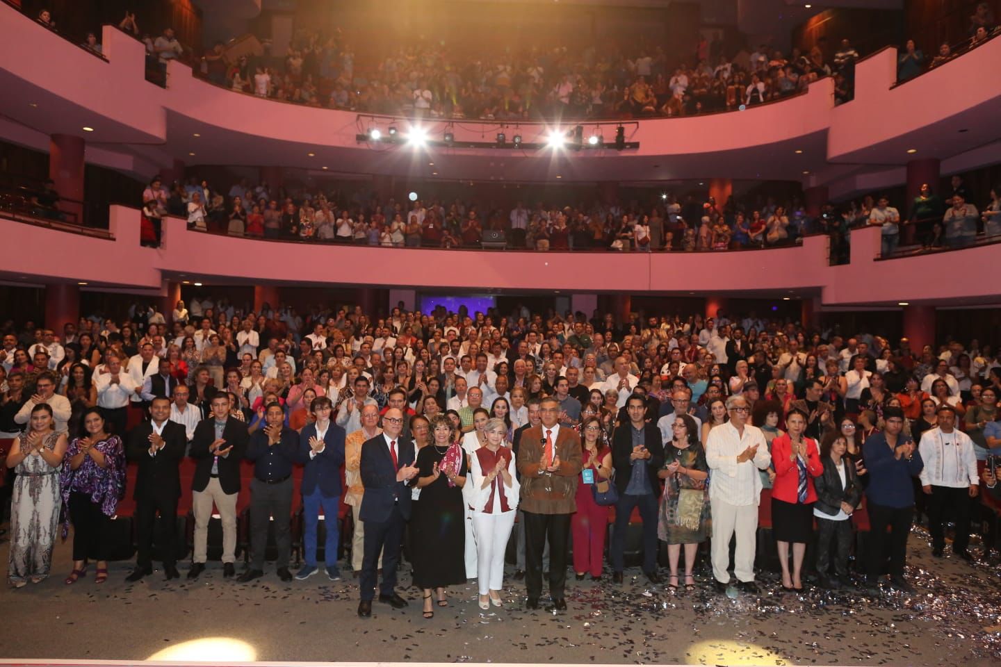 En la ceremonia protocolaria también acompañó al gobernador, Silvia Casas González, secretaria de Bienestar Social, además de legisladores, funcionarios y la representante de la comunidad artística del estado.