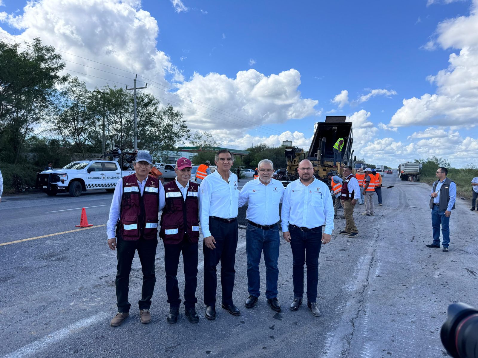 Asimismo, con el secretario de Obras Públicas, Pedro Cepeda Anaya recorrió los trabajos de conservación y rehabilitación de la carpeta asfáltica, en el kilómetro 11.7 de la carretera Reynosa-San Fernando, que beneficia a pobladores de diversos ejidos de esta comunidad.