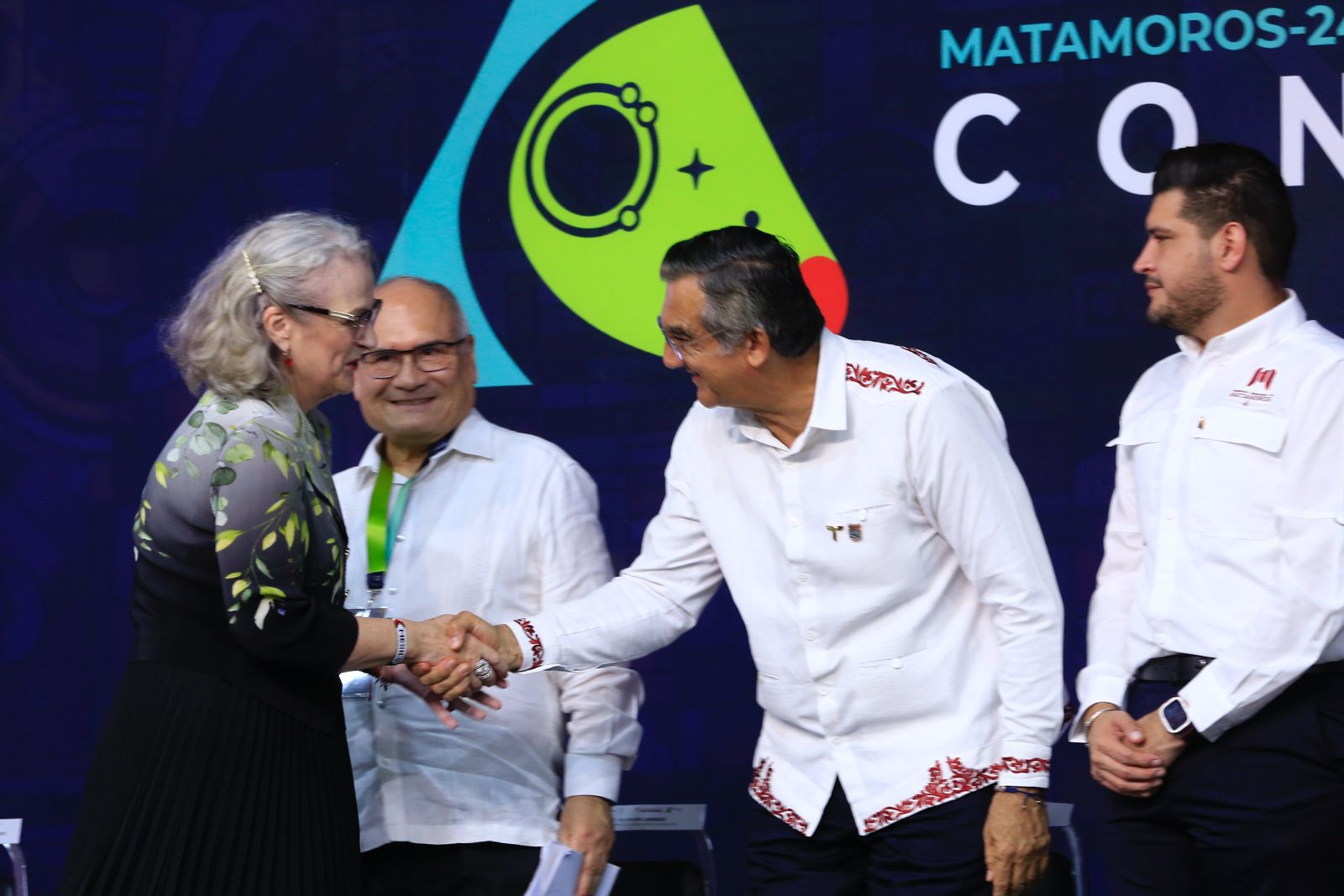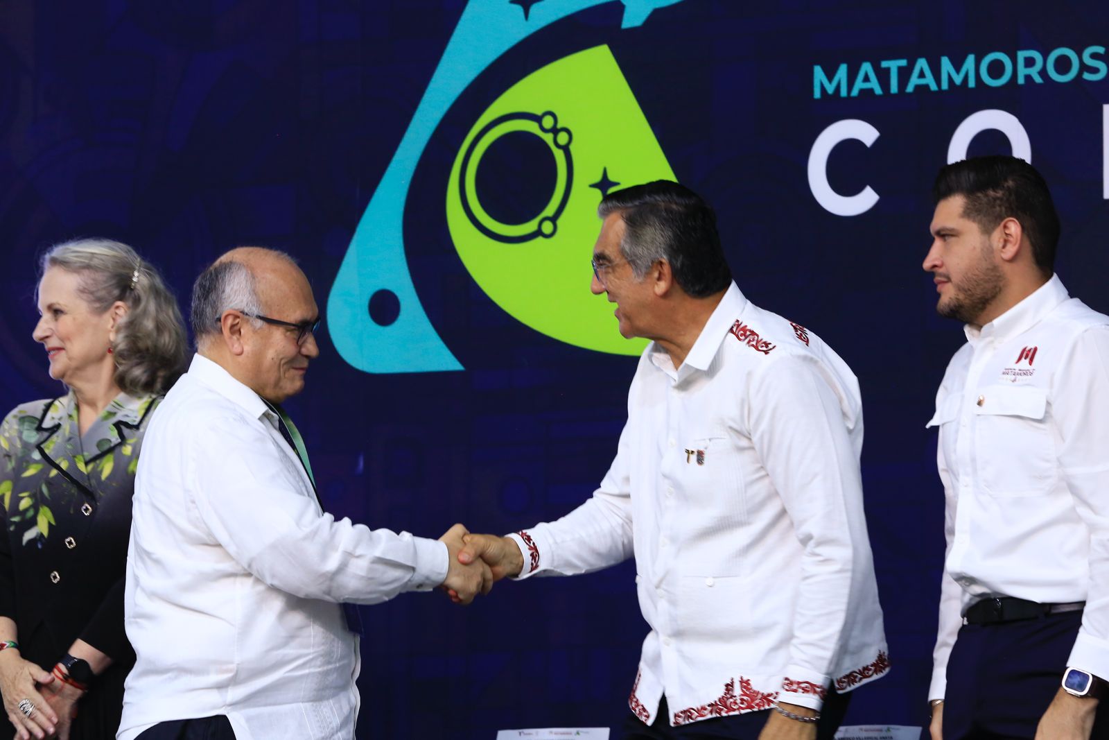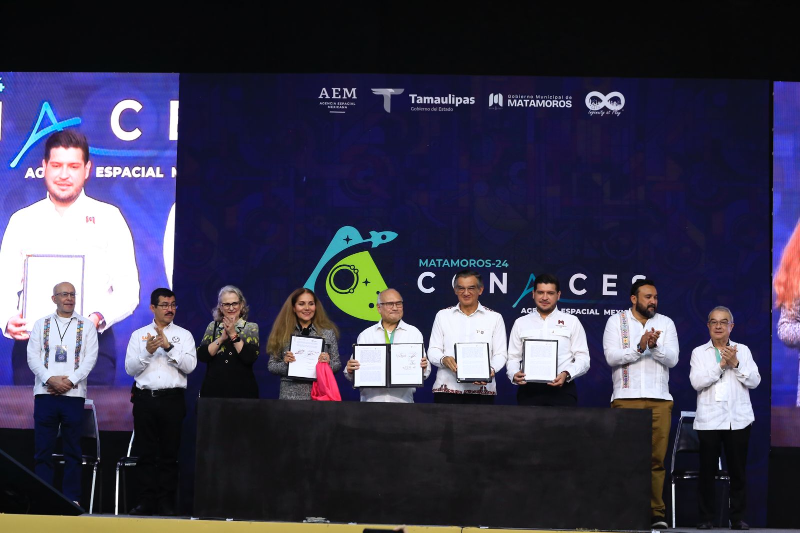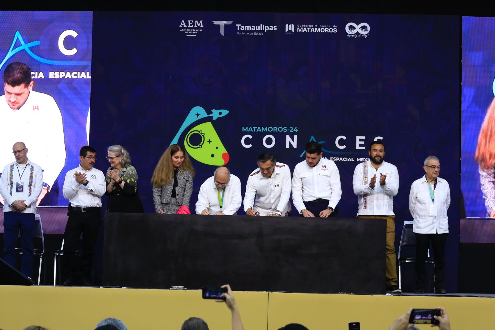 Al inaugurar el evento «El Espacio para la Sostenibilidad», que se celebra en el Centro de Convenciones Mundo Nuevo, acompañado por Salvador Landeros Ayala, director general de la Agencia Espacial Mexicana, y el Dr. Rodolfo Neri Vela, primer astronauta mexicano en ir al espacio, el gobernador firmó también la carta de intención entre la AEM, el Gobierno del Estado, el Gobierno de Matamoros y la empresa Infinity City Space, que sienta las bases para impulsar el desarrollo y la aplicación de la tecnología espacial en el estado de Tamaulipas.
