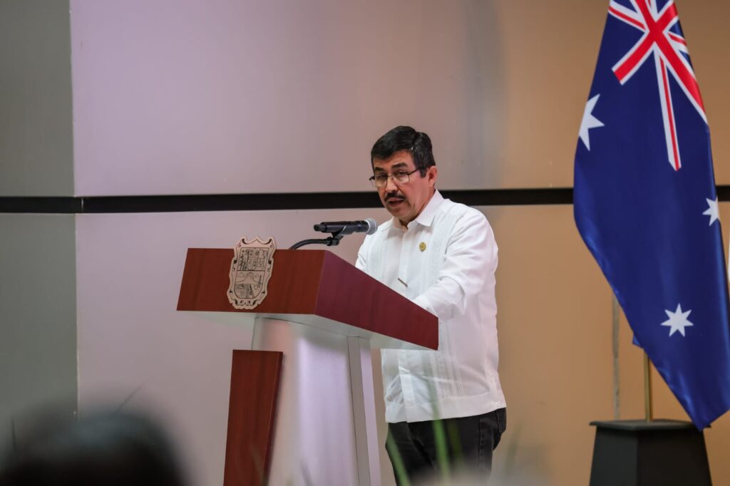 El presidium estuvo conformado también por Penny Toledo, jefa de Misión de la Embajada de Australia en México; Ernesto Céspedes Oropeza, embajador de México en Australia vía online; la senadora electa Olga Sosa Ruíz, además de contar con la presencia del gabinete estatal, empresarios y alumnos para visualizar y conocer la cultura de este país.