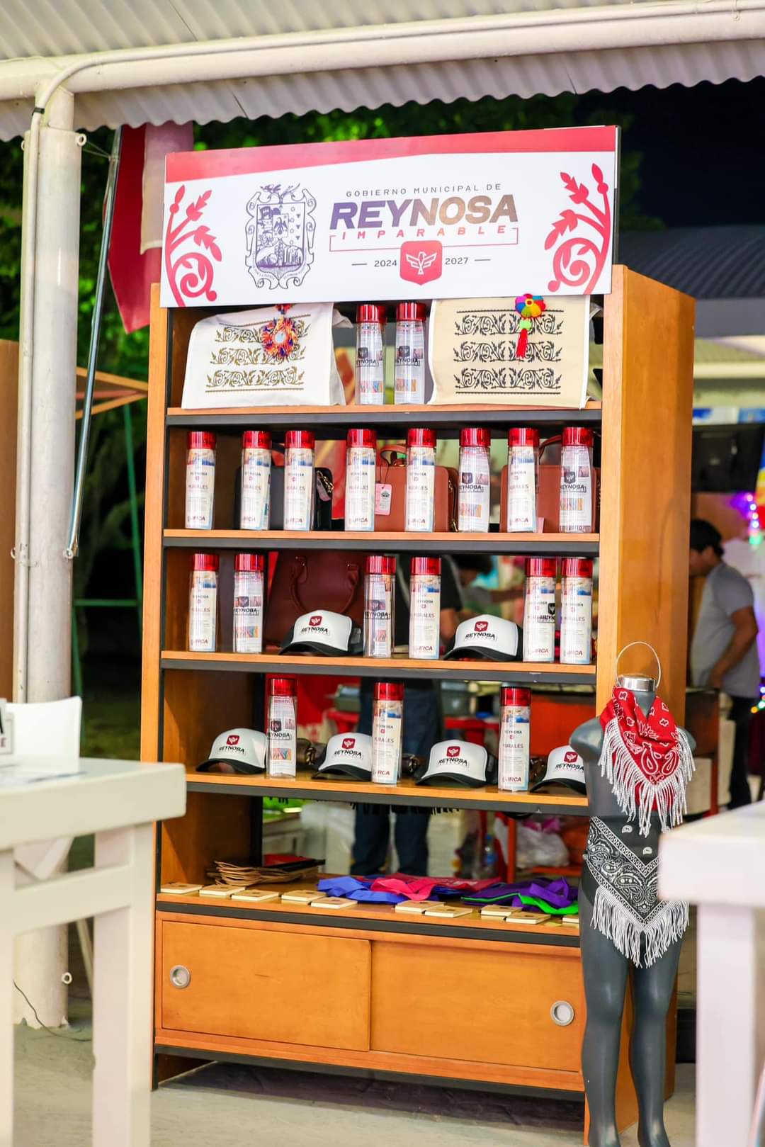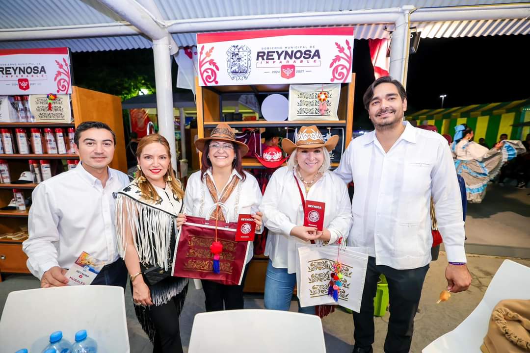 En este stand de Reynosa, el Presidente Carlos Peña Ortiz mostró a funcionarios y familias asistentes los productos que resaltan como símbolo de la ciudad y donde los visitantes pueden descubrir la vasta e interesante creatividad de artesanos y emprendedores de nuestra localidad, además, parte de los programas con los que su Gobierno proporciona bienestar a las familias; al Alcalde y Gobernador lo acompañaron, la Secretaria de Finanzas de Tamaulipas, Adriana Lozano Rodriguez, Diputados, y Secretarios Estatales, entre otras personalidades.
