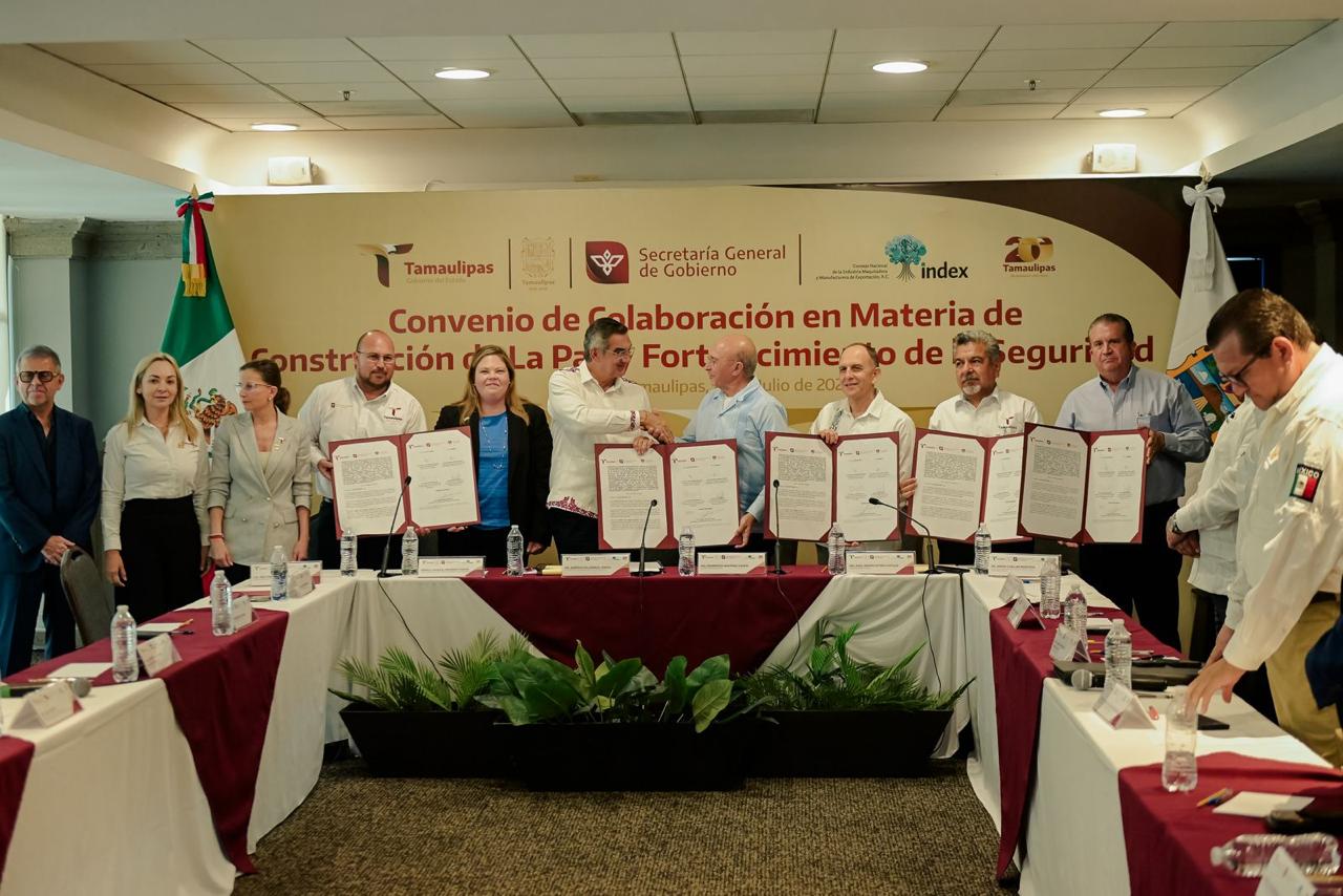 Previo a este evento, se realizó la firma del convenio de colaboración en materia de construcción de la paz y fortalecimiento de la seguridad, entre el Gobierno de Tamaulipas e INDEX.