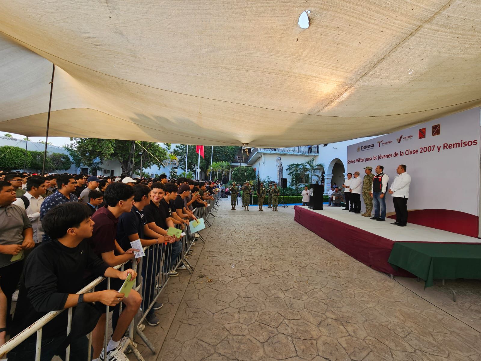En el proceso, celebrado en la explanada de la Presidencia Municipal, participaron 1,384 jóvenes conscriptos, resultando 1,200 bolas blancas y 184 bolas negras, conforme a la dinámica establecida por la Secretaría de la Defensa Nacional (SEDENA).