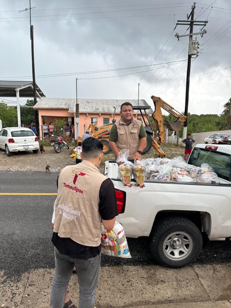 En un trabajo conjunto con el Gobierno Federal, el Sistema DIF Tamaulipas, COEPRIS, Protección Civil y la SEDENA, se entregaron colchonetas, cobertores, artículos no perecederos y botellas de agua. Asimismo se instalaron dos unidades móviles por parte de la Secretaría de Salud abastecidas con medicamentos y equipo de primeros auxilios.