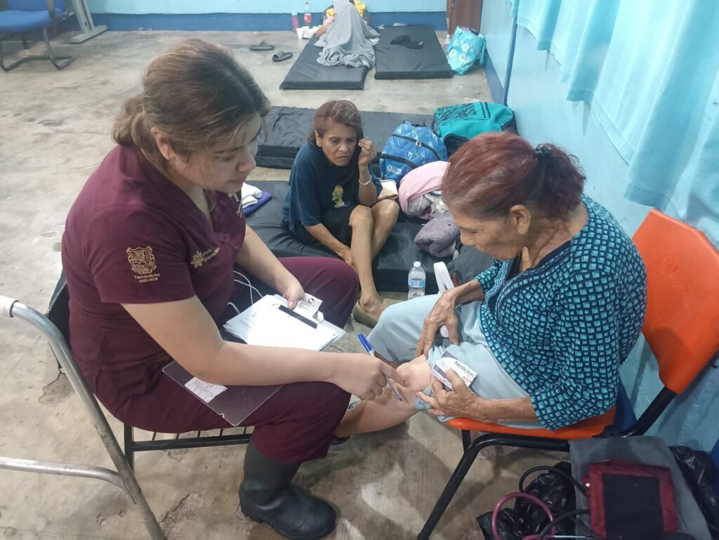 Ciudad Victoria, Tamaulipas.- Personal del área médica de la Secretaría de Seguridad Pública de Tamaulipas (SSPT) y Universidad de Seguridad y Justicia de Tamaulipas (USJT) acudieron a los municipios de Padilla, Hidalgo y Güémez para brindar atención médica y psicológica a las personas que se encuentran en los diferentes albergues resguardadas de las inclemencias climatológicas.