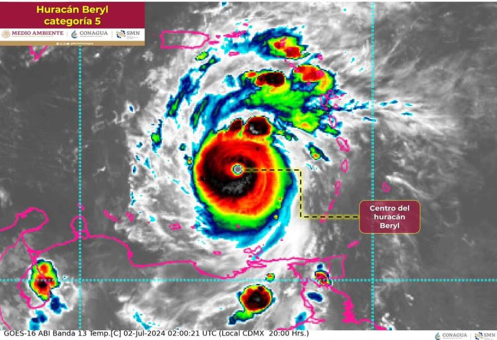 Beryl está avanzando por el Mar Caribe. Se ubica a 825 Km. de la Isla Beata, República Dominicana, y a 2,460 km al Este-Sureste de Cancún, Q. Roo presentando vientos sostenidos de 260 km/h y ráfagas de viento que alcanzan los 300 km/h, desplazándose rápidamente al Oeste-Noreste y aún no genera efectos en México.