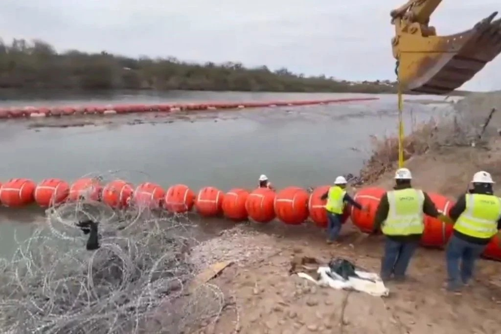 Las autoridades abren un acceso en la barricada de alambre de navajas, instalada por el gobernador de Texas, Greg Abbott, para bloquear el paso de migrantes. Luego, la cierran al regresar al lado estadounidense.