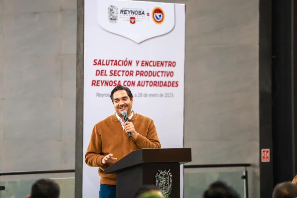 “En Reynosa tenemos gente que sabe lo que hay que hacer y lo hace, gente trabajadora que no se raja a pesar de las adversidades y siempre que promovemos esta ciudad en el mundo es muy fácil porque decimos que tenemos a los mejores trabajadores”, dijo el Presidente al reconocer a los empresarios, líderes sindicales obreros y empleados de la industria.