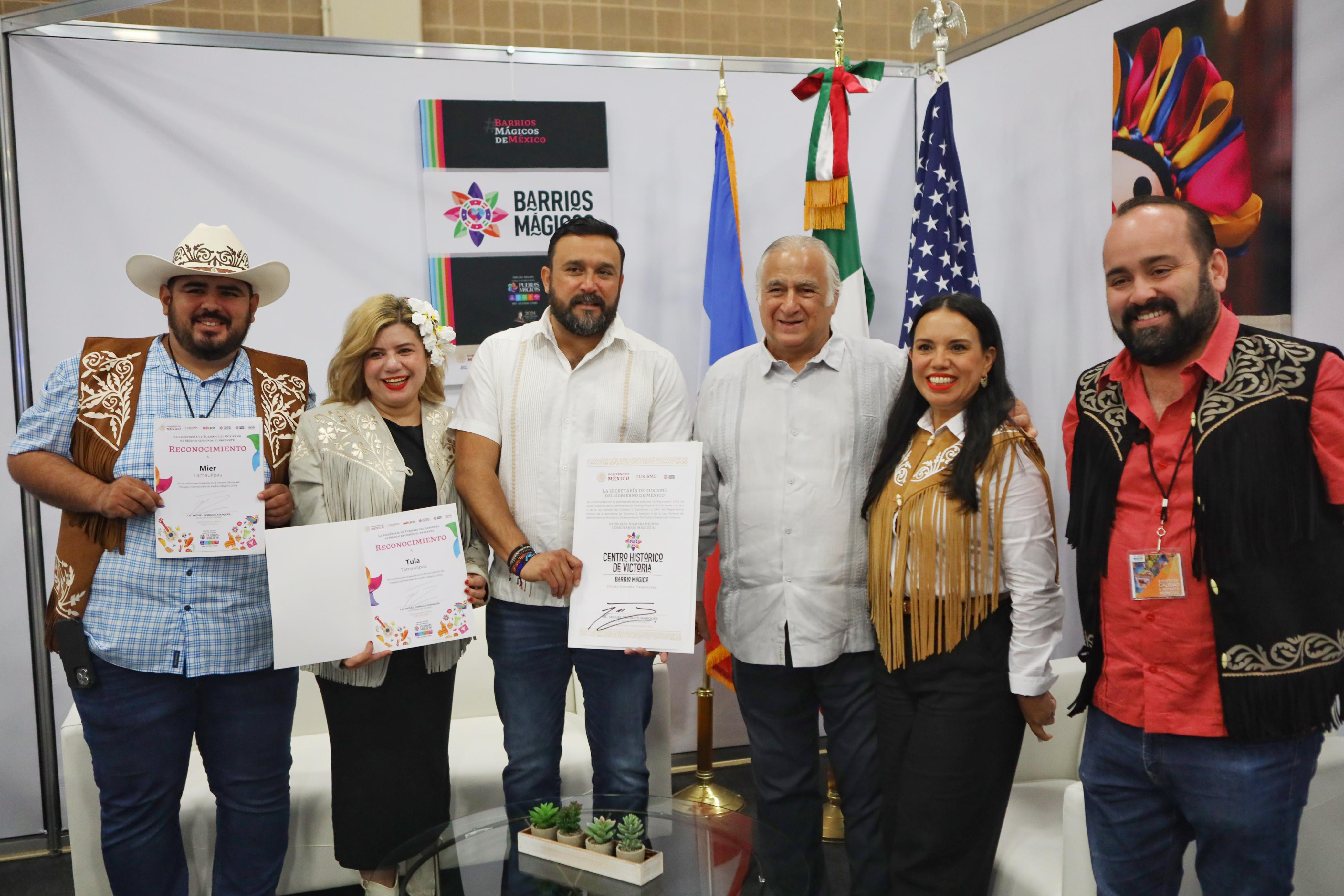 Cd. Victoria, 30 de junio 2024. – En el marco de la tercera edición del Tianguis Internacional de Pueblos Mágicos, que se celebra en San Antonio, Texas, el Gobierno de Victoria recibió el nombramiento de Barrio Mágico que incluye la distinción de siete lugares emblemáticos de la ciudad.