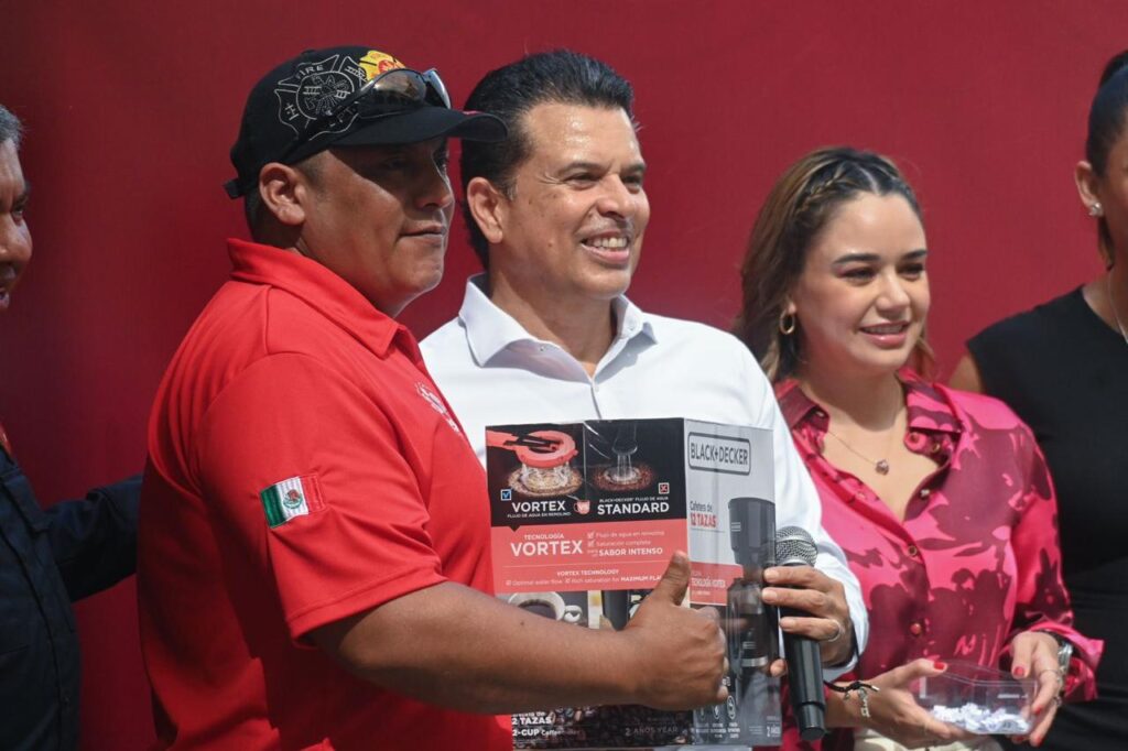 Durante la celebración, en la que estuvo acompañado de la presidenta del DIF Municipal Lucy de Gattás, entregó una unidad de rescate y herramienta para dignificar su labor, con el compromiso de dotar en los próximos meses de 80 equipos más de protección contra incendios.