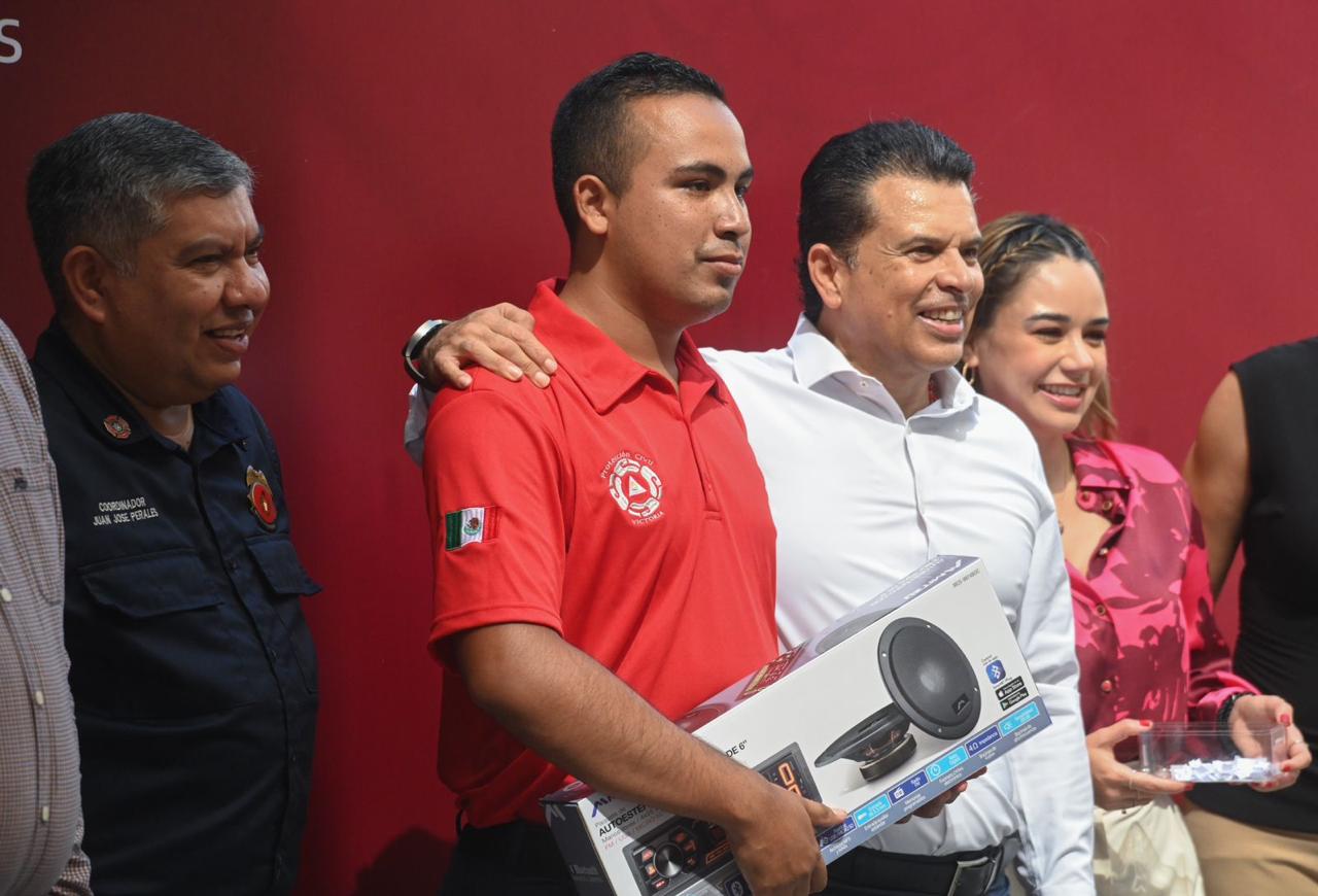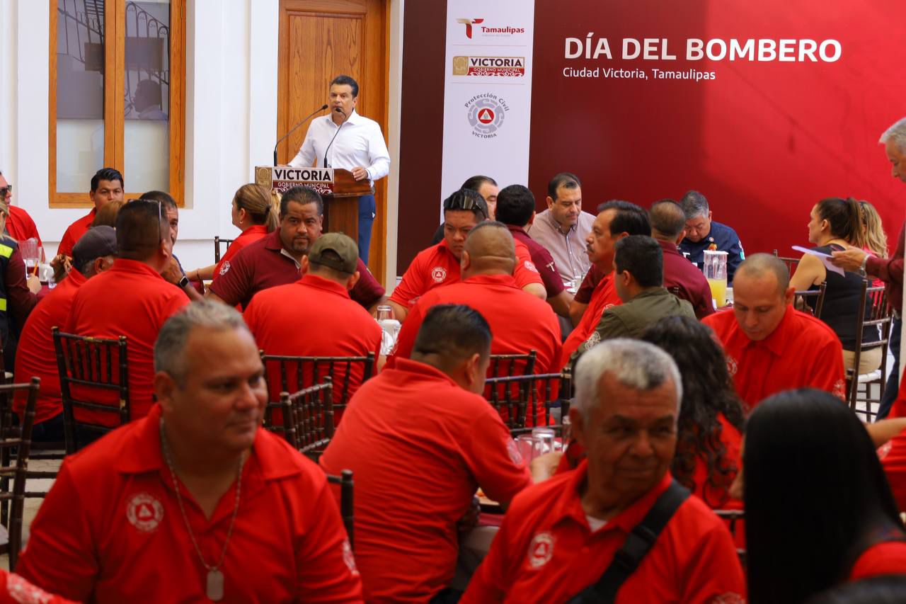 En conmemoración por el Día del Bombero, el presidente municipal de Victoria Eduardo Gattás Báez, reconoció al personal del Heroico Cuerpo de Bomberos por su trabajo y valentía para proteger la vida y patrimonio de los victorenses.