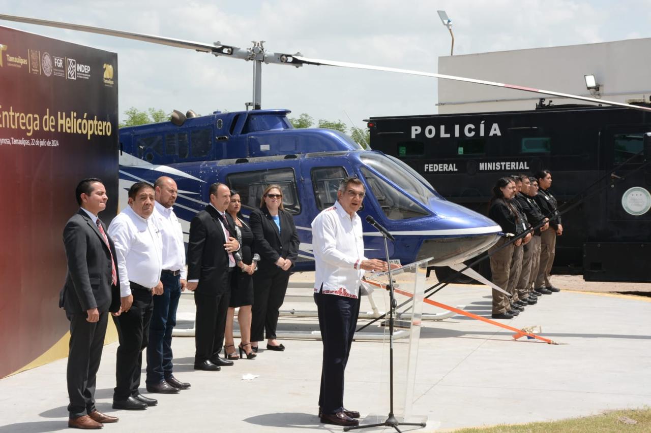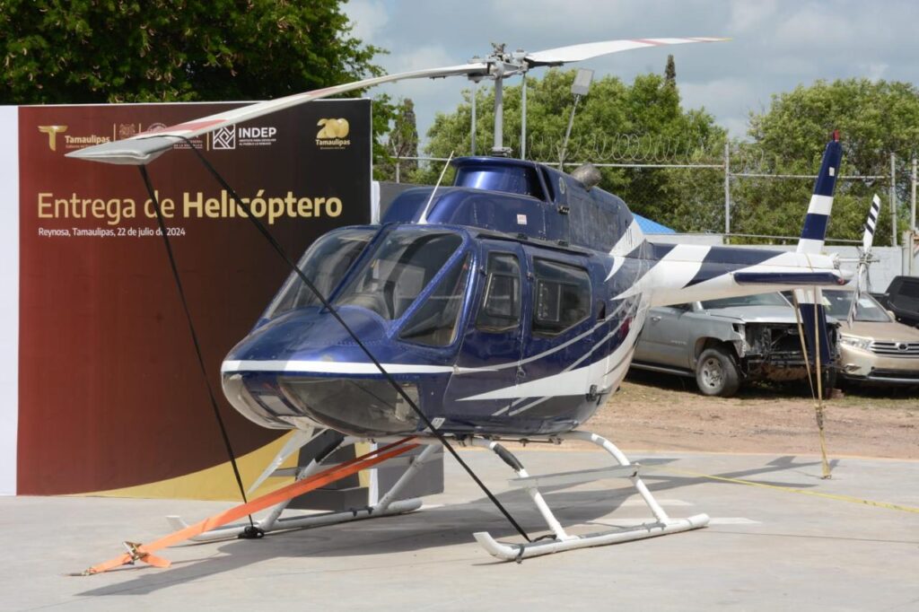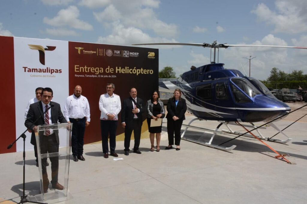 Como parte de sus actividades, el gobernador asistió este mediodía a las instalaciones de la Fiscalía General de la República, en donde acompañado por la cónsul general de Estados Unidos en Matamoros, Brianna Powers y de Ernesto Cuitláhuac Vázquez Reyna, titular de la FGR en Tamaulipas, y funcionarios del INDEP ( Instituto Nacional para Devolver al Pueblo lo Robado), recibió la donación al Gobierno de Tamaulipas de un helicóptero Bell 206 que fue decomisado por esta institución.