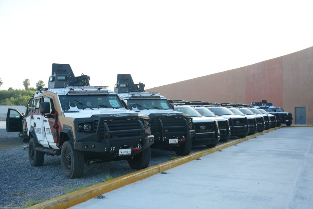 Durante la ceremonia cívica de honores de este lunes en el C5 y en el inicio de una intensa gira de trabajo en esta ciudad, el gobernador del estado dio el banderazo a un nuevo lote de patrullas camionetas tipo pick up y black mambas que se incorporan al parque vehicular de la Guardia Estatal en Reynosa.